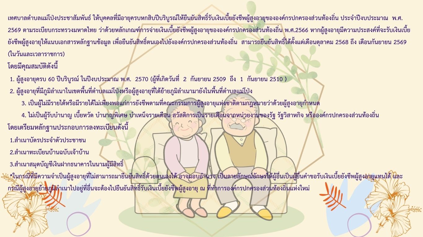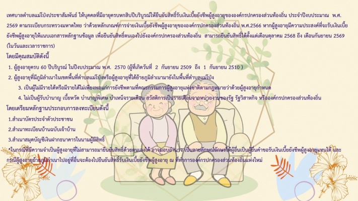 ประชาสัมพันธ์แนวทางการยื่นยืนยันสิทธิรับเงินเบี้ยยังชีพผู้สูงอายุ และยื่นคำขอลงทะเบียนรับเงินเบี้ยความพิการขององค์กรปกครองส่วนท้องถิ่น ประจำปีงบประมาณ พ.ศ. 2569