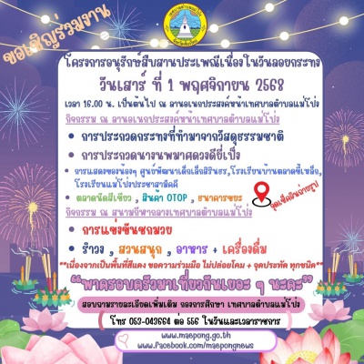 ขอเชิญมาร่วมงาน "โครงการอนุรักษ์สืบสานประเพณีเนื่องในวันลอยกระทง" ประจำปีงบประมาณ พ.ศ.2568